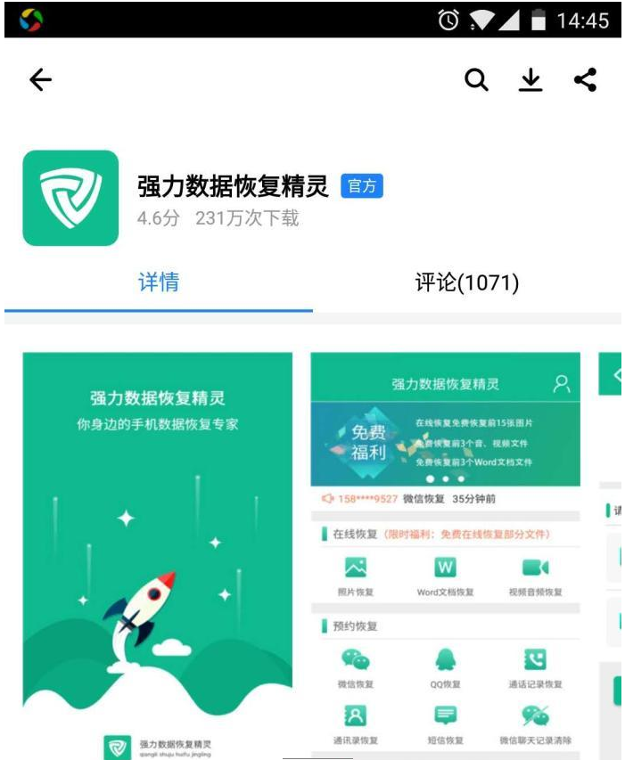 1、强力数据恢复精灵下载后怎么使用,首先我们,在手机自带的应用商店里点击下载“强力手机数据恢复精灵”,然后并根据提示进行安装。