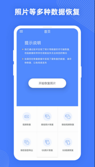 这款安卓数据恢复大师免费工具可以帮助大家找回误删的照片、视频、微信照片、微信视频、QQ照片、QQ视频等等数据的软件,也可以帮助大家导出微信语音文件,并且可以支持恢复照片、视频的预览以及语音的播放,支持照片等等彻底删除;