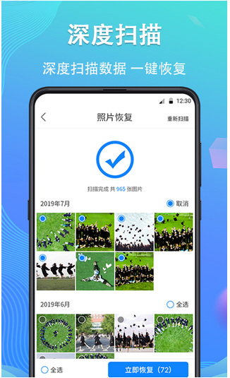 强力数据恢复应用深入安卓系统底层,通过深度扫描技术为用户迅速扫描丢失或删除的数据。现已支持微信照片恢复、微信文件恢复、手机照片恢复、手机视频恢复、微信消息彻底清除、消息彻底清除、图片彻底删除,免Root恢复等,那么强力手机数据恢复软件怎么样呢?大家一起来看看吧。