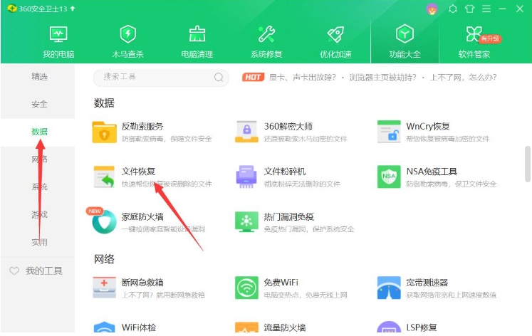 软件版本:小白数据恢复软件1.1&360安全卫士13.1.0&