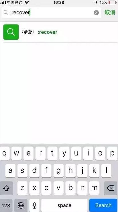 1.安卓数据恢复精灵免费恢复微信聊天记录教程,我们先将微信打开,然后在 搜索 框里输入“:recover”,进行搜索。