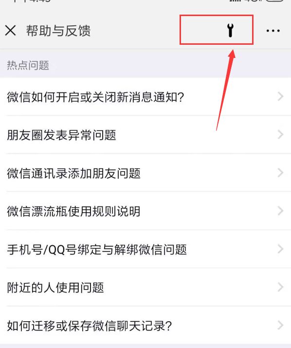 2.进入到帮助与反馈界面后,选择右上角的扳手图标。