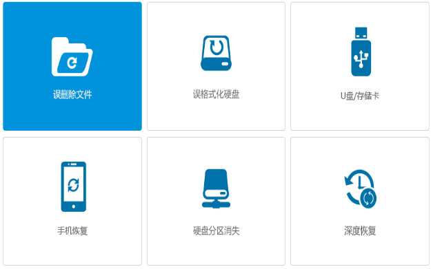 1、电脑运行安装好的万能数据恢复大师软件,来到主界面后就可以根据需要选择功能使用了,这里就以“误删除文件”作为演示。