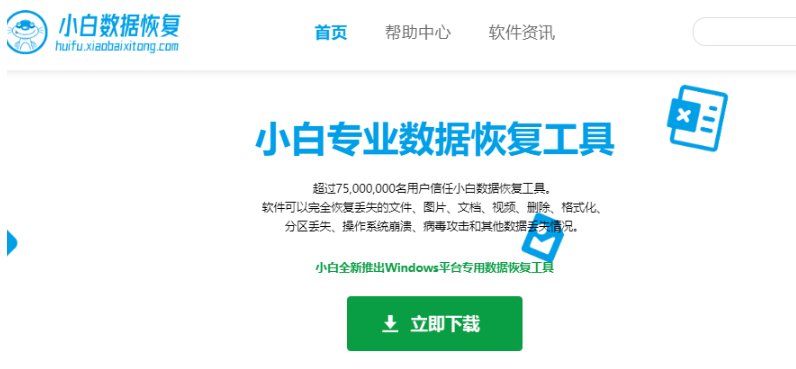 1、超强数据恢复,首先在电脑上,下载安装“小白数据恢复软件”使用。