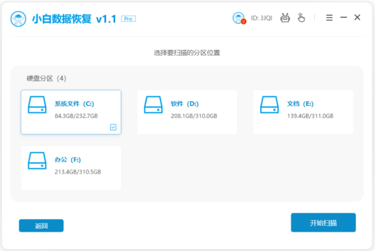 软件版本:小白数据恢复软件1.1
