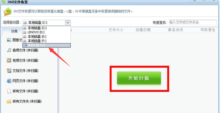 2、选择要扫描的硬盘分区位置,点击开始扫描。