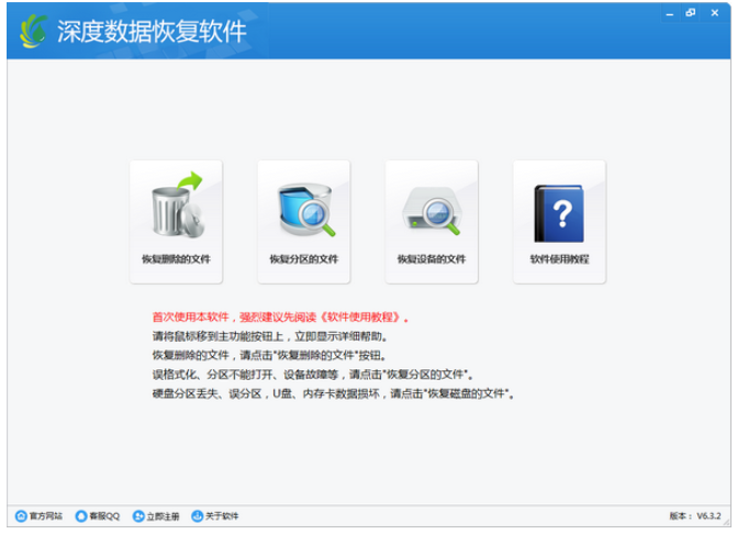 深度数据恢复软件,可以有效解决各种硬件、软件或人为误操作引起的文件、数据丢失问题!比如:误删除文件、误格式化分区、误分区、文件不能复制、分区打不开、提示RAW等。