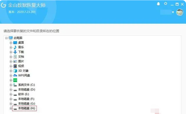 2、选择好后直接进入磁盘选择界面,选择需要扫描的H盘,单击“开始扫描”耐心等待软件扫描结束。