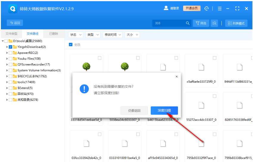 9、如果我们扫描之后没有找到自己想要恢复的文件,那么可以点击【深度模式】,进入深度扫描中再次扫描文件即可。