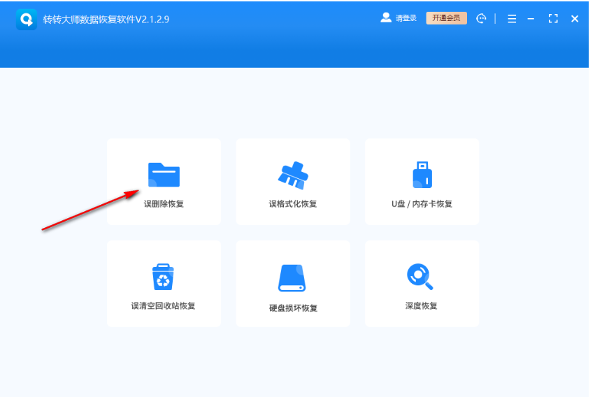 1、这里小编以【误删除恢复】功能来操作一下,其他的几个功能操作起来和【误删除恢复】是差不多的,如果自己电脑中删除了重要的文件,那么可以进入到【误删除恢复】页面中进行恢复。