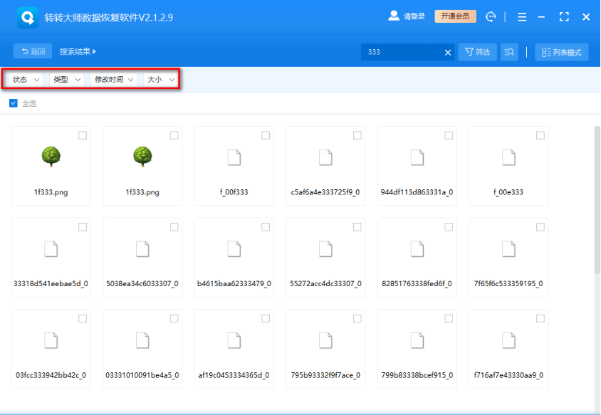 8、换成预览模式之后,你可以根据【状态】【类型】等来选择文件。
