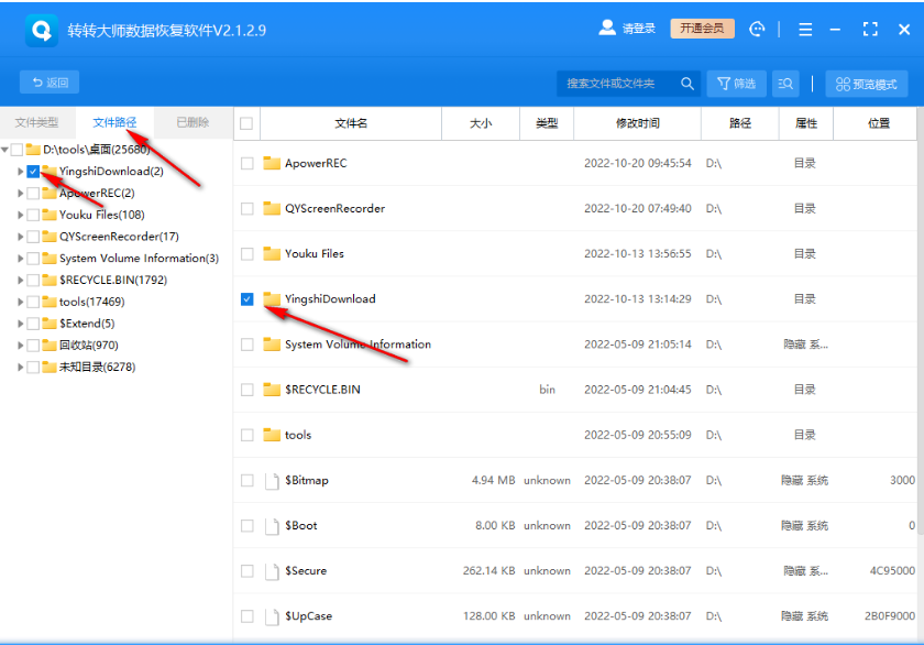 4、如果你通过【文件路径】来选择,那么在该选项卡下,勾选自己从该路径中选中的文件夹,勾选之后,在右侧的页面上只要存放在该文件夹中的文件都会被选中。