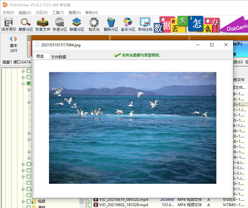 3、等待扫描出所列出的文件后,大家就可以进行文件预览了,鼠标点击软件左侧的文件列表,来查看文件十分是需要恢复的。