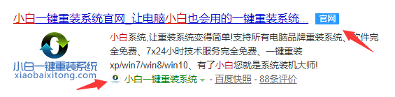 很多用户反馈搜索“小白一键重装系统”后点击一个搜索结果发现不是小白官网,请记住上面有广告的都不是小白官网。