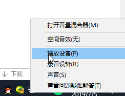 鼠标右击声音图标,然后点击播放设备打开。在播放列表中检查设备是否被禁用,重新点击启用即可,接着重新测试下耳机。