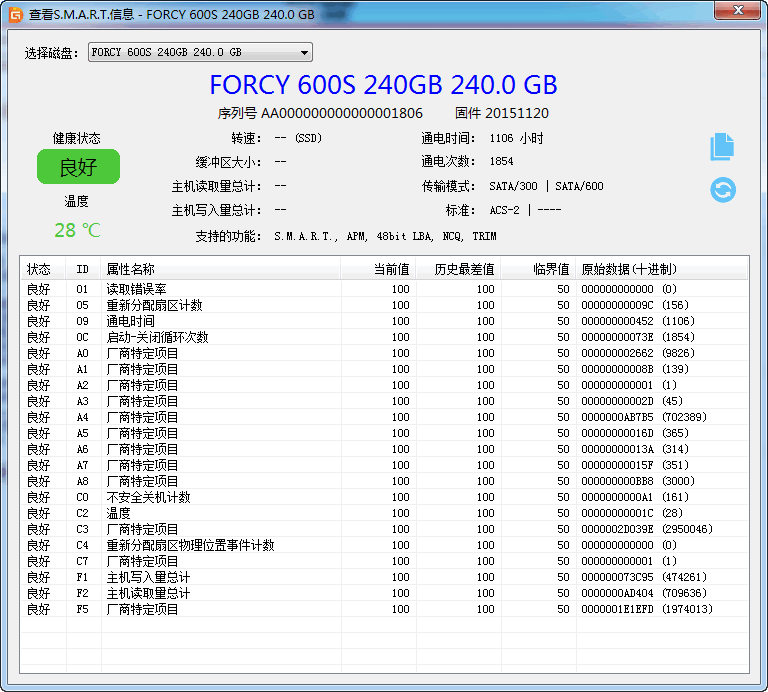 2、打开 DiskGenius 分区工具,选择硬盘菜单,在菜单中找到”查看 S.M.A.R.T. 信息,在这里您可以清晰的看到当前硬盘的通电时间以及是否存在坏道等信息。一般硬盘使用时间特别久,基本上都可以考虑更换掉了,使用老化会造成读写速度特别慢,从而影响 Windows 的启动速度,响应速度等等。