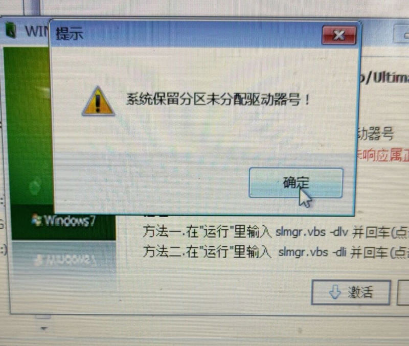 Windows 7 激活时提示“系统保留分区未分配驱动器号!”解决方法