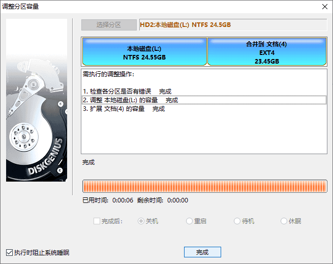 4. 在调整分区过程中请确保电源供电正常、不要强行关机。