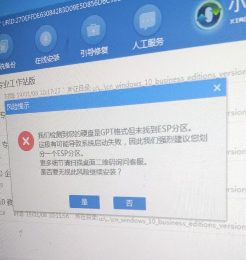 装机出现“我们检测到您的硬盘是GPT格式但未找到ESP分区”解决方法
