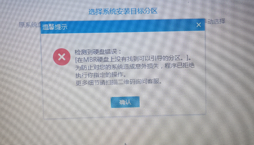 检测到硬盘错误:在MBR硬盘上没有找到可以引导的分区