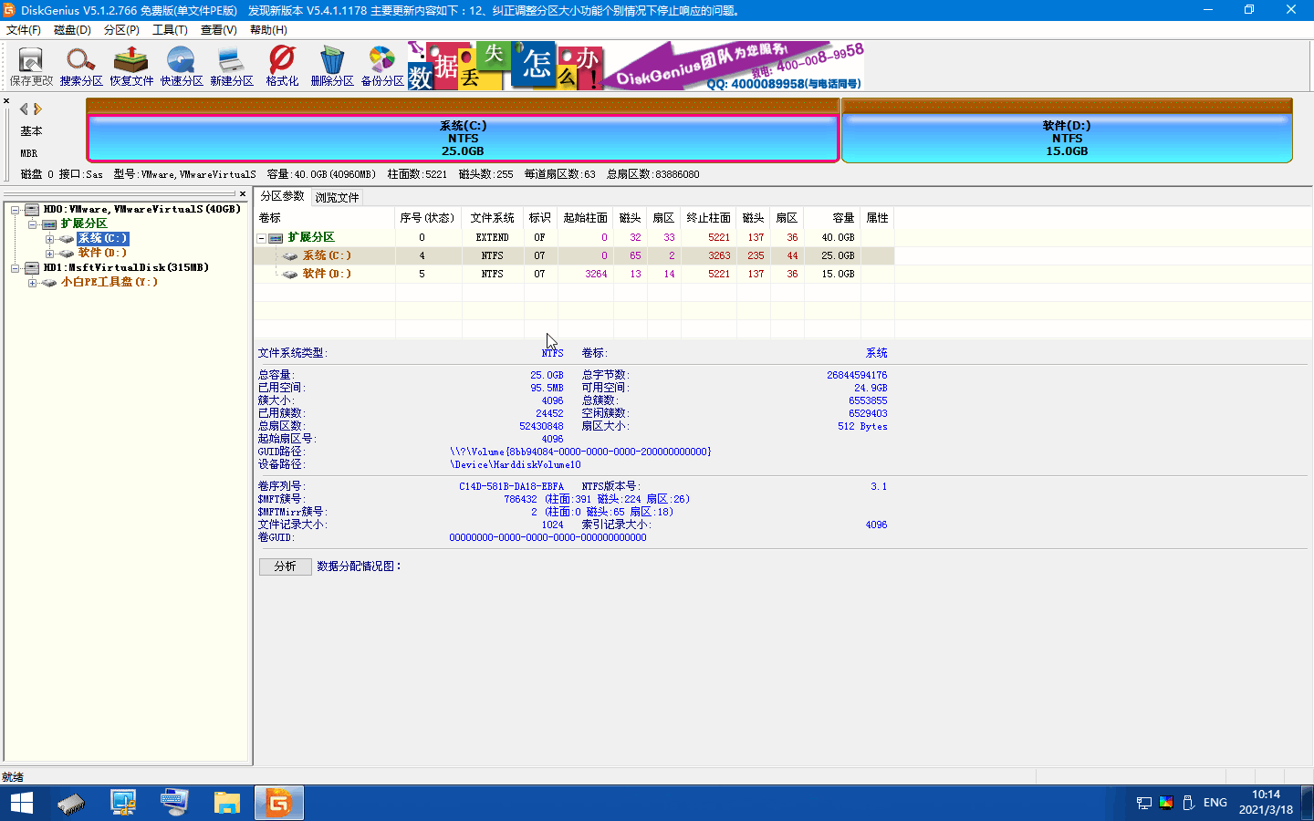 1、在传统 MBR 硬盘分区中有主要分区和扩展分区,而通常情况下我们需要把系统安装在主要分区上,一般情况下 C 盘都是主要分区,而我们在执行快速分区的时候一般都会默认勾选。在当前的硬盘分区中我们可以看到 C 盘处于扩展分区中。