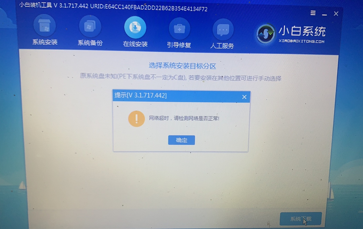 有用反馈说自己在使用小白装机工具选择在线安装时提示网络超时,请检测网络是否正常!,如果您有碰到这种情况,您可以尝试使用以下方法解决。