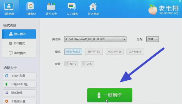 6、U盘格式化完成之后,点击一键制作,即可开始制作U盘启动盘。