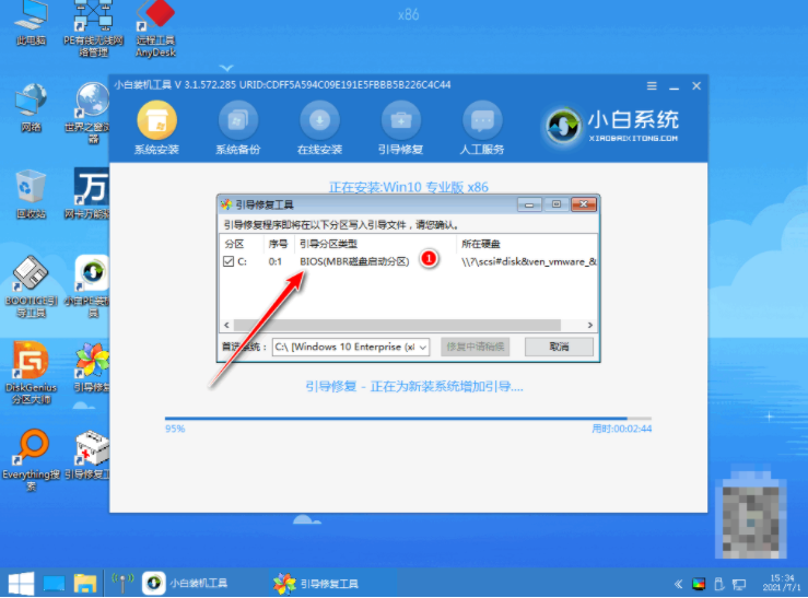 6、引导修复工具弹窗弹出,默认恢复C盘即可。