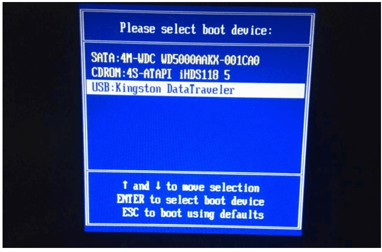 4.重新启动电脑时,需要快速不断按下快捷键,在调出的界面选择USB选项。