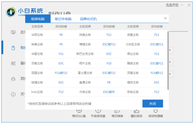 3、装机软件制作u盘启动盘成功之后,快速预览需要安装的电脑主板的启动热键,再拔掉u盘退出。