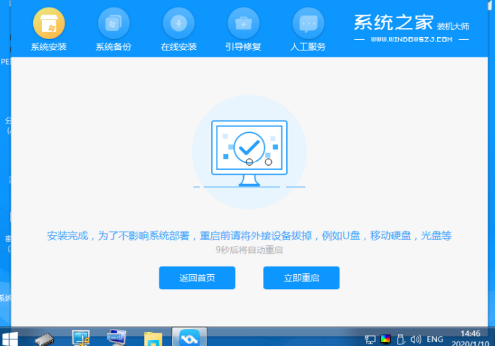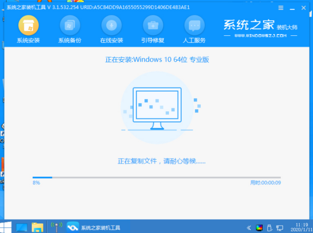 5、进入pe系统后,系统之家装机工具会自动开始安装win10系统。