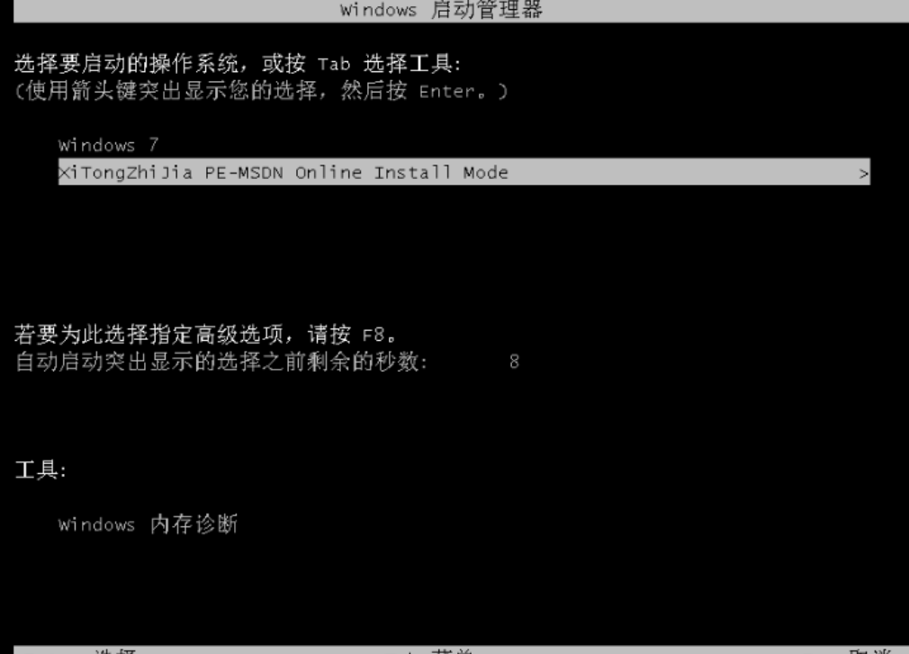 4、电脑重启后进入了开机选项界面,选择第二项xiaobai-pe系统进入。