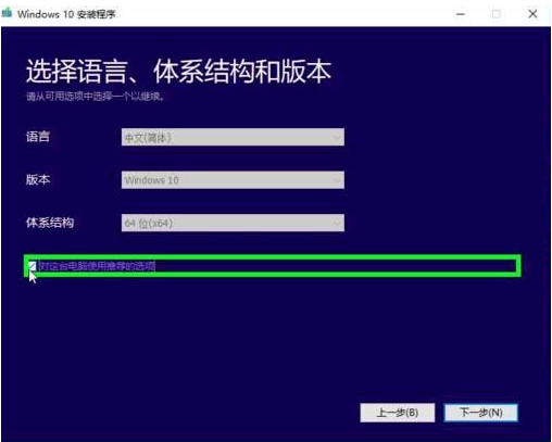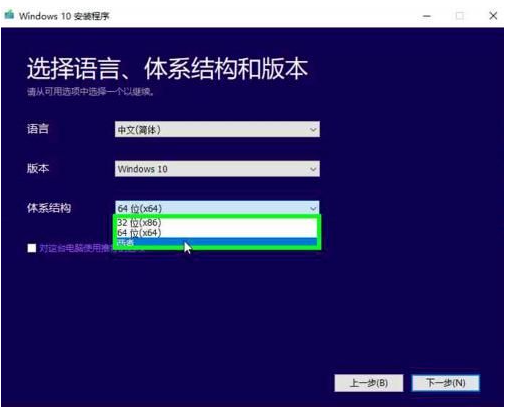 6、取消“对这台电脑使用推荐的选项”,点击体系结构,在下拉菜单中选择第三项“两者”。