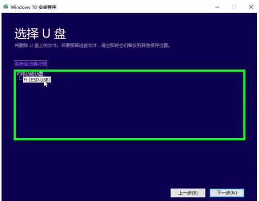 9、选择U盘盘符后点击下一步。