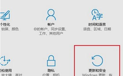 2.打开“设置”界面,从中找到“安全和更新”按钮,点击进入“安全与设置”详细界面。