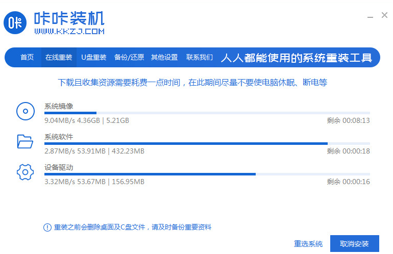 2.接着软件会开始自动下载系统文件,无需操作。