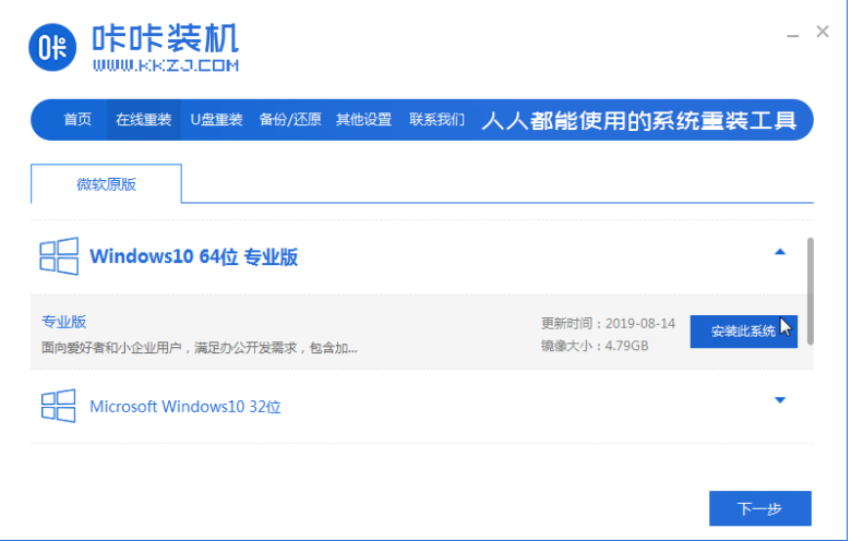 软件版本:咔咔装机软件