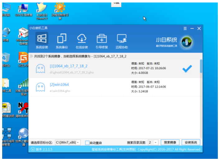 7、开始自动弹出PE装机工具,选择U盘里的系统镜像,“目标分区”选择系统盘,一般为C盘,鼠标点击“安装系统即可。