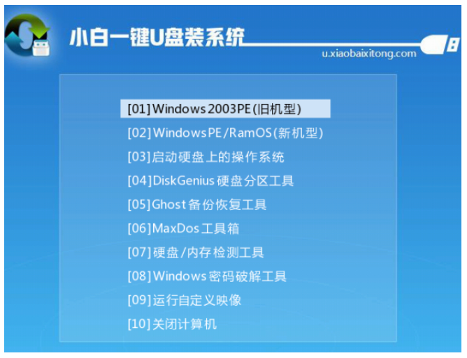 5、在需要重装系统的电脑接口上插入刚刚我们制作好的u盘。启动电脑按下启动热键,选择第二项,按回车键进入pe系统界面。