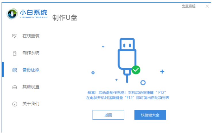 4、制作完成之后,将制作好的u盘拔掉即可。