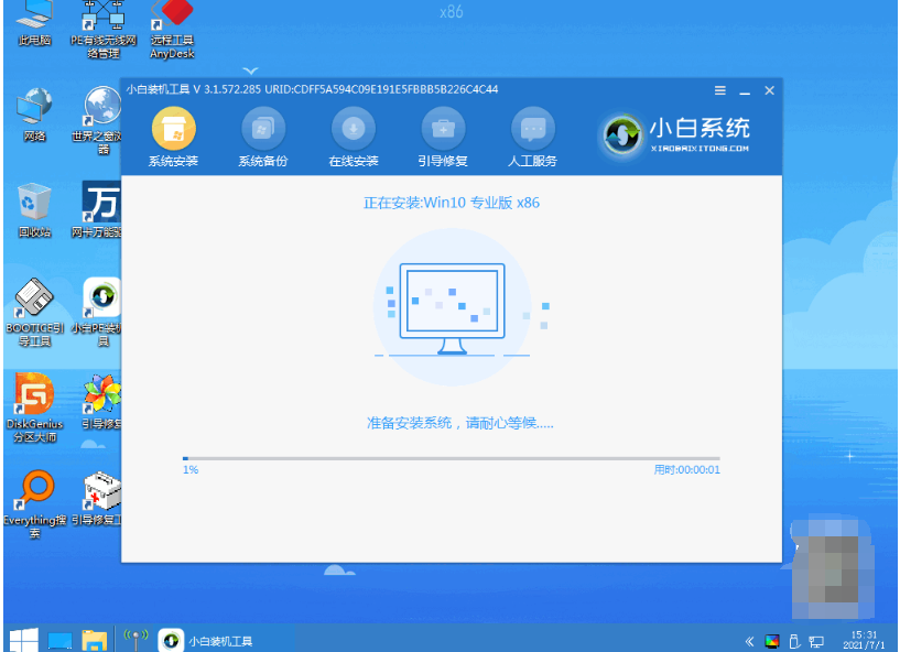 等待软件自动下载系统镜像并部署环境,完成的时候,自动会重启电脑。