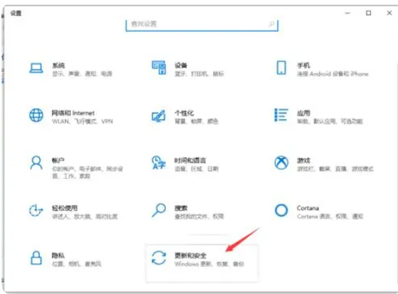 1、按快捷键win+i打开系统设置窗口,选择【更新和安全】。