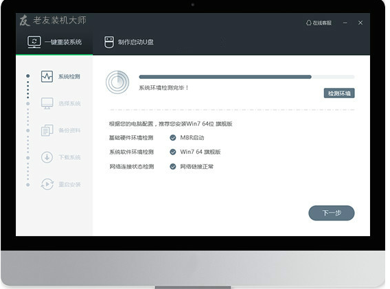 方法三:下载老友装机大师选择windows10系统点击下载完成。