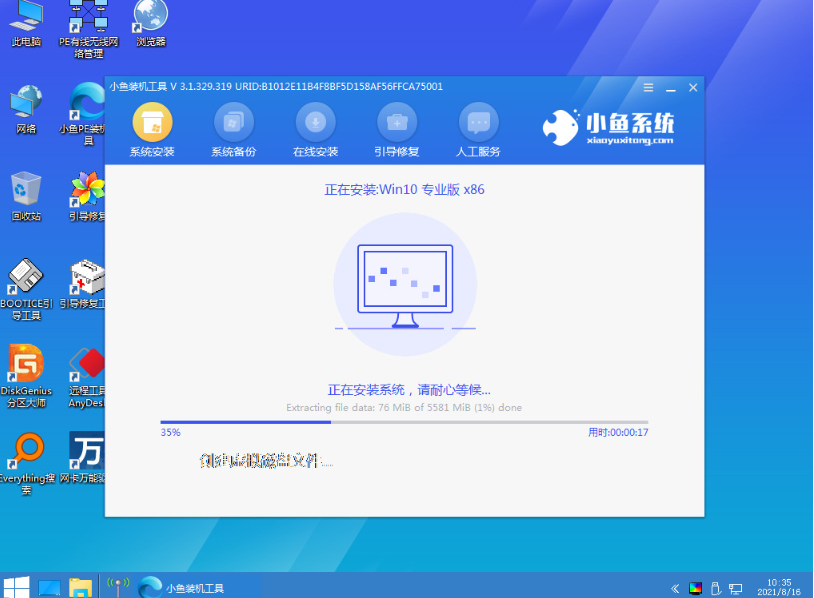 2、在pe系统内打开小鱼装机工具,选择win10系统点击安装。
