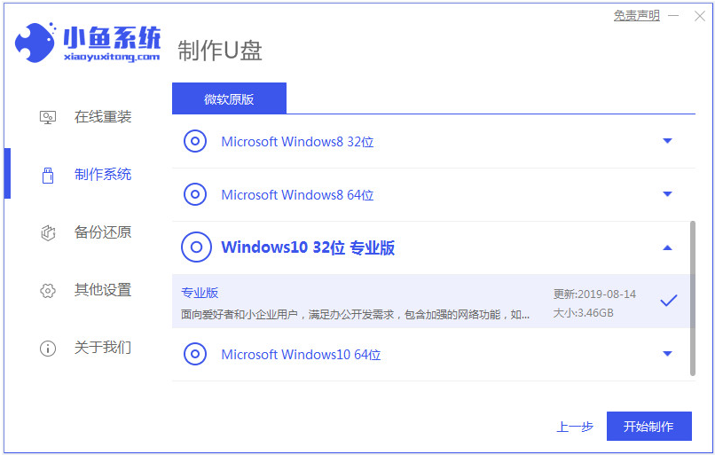 2、根据需要选择win10系统,点击开始制作u盘启动盘。