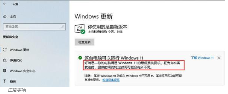 8、现在如果我们没有购买预装win11的电脑,那就无法在windows更新中进行升级。