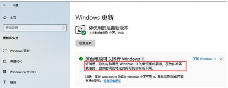 9、大家想要升级的话,可以先在windows更新中查看自己是否可以升级。