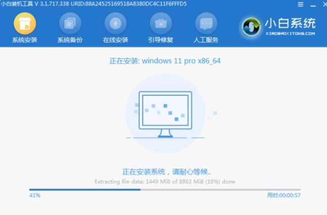 8、此时win11进入安装程序,等待安装完成之后,电脑会自动重启操作。直至进入win11系统桌面。