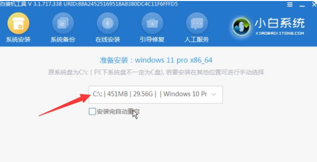 7、当win11系统镜像被搜索出来之后,点击安装,选择C盘安装即可。