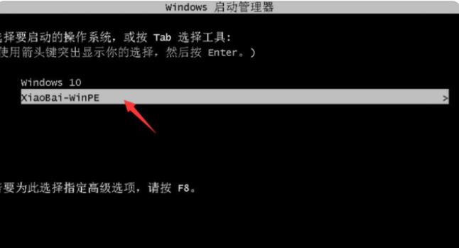 5、当系统安装完成后,我们退出小白软件,重启电脑进入到启动项页面,选择xiaobaiPE进入。